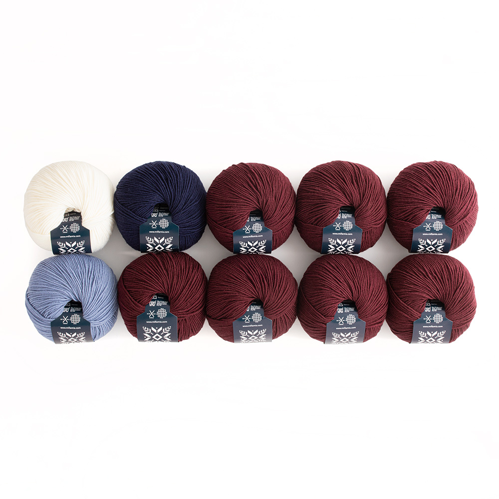 Knitting kit for MillaMia Mija Scarf. We love a little dash of accent colour, and the Mija Scarf has colour tipped ends and beautifully textured chevron shapes throughout, perfect for trapping the warmth in this super soft merino wool. Make the fabulous sweater to match, and you'll be cosy and super stylish every time you wear them!